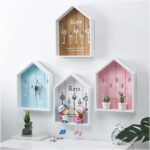 Wood wall mounted hanging key holder box hooks home decoration