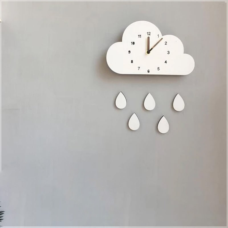 Home Wall Art Clocks Nordic Style Nursery Wooden Cloud Clock